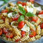 This Delicious Caprese Pasta Salad is a fresh, vibrant twist on the classic Caprese salad, combining cherry tomatoes, mozzarella, basil, and pasta, all tossed in a simple balsamic dressing. I like to serve it as a light lunch, picnic dish, or a colorful side for summer dinners.