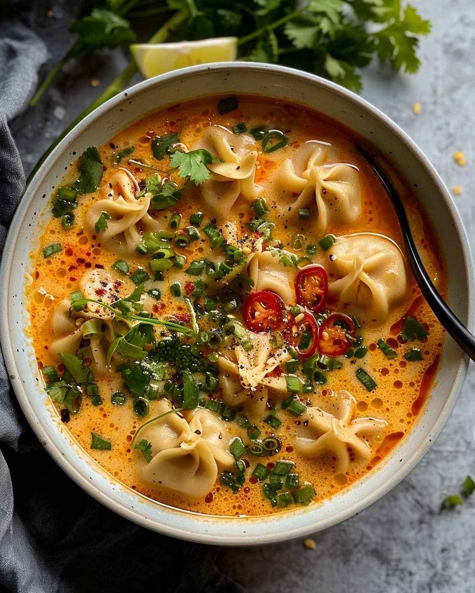 I love how this recipe takes simple ingredients and transforms them into something that feels both exotic and comforting. The curry paste adds a punch of flavor that’s mellowed beautifully by the coconut milk. The dumplings soak in all the goodness of the broth while adding their own delightful chew. It’s a one-pot meal that’s satisfying, cozy, and quick to put together—perfect for weeknight dinners, meal prep, or impressing friends at the dinner table.