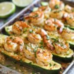 Light and flavorful zucchini boats filled with juicy shrimp cooked in a buttery garlic lemon scampi sauce, topped with parmesan and fresh herbs for a satisfying yet wholesome meal.