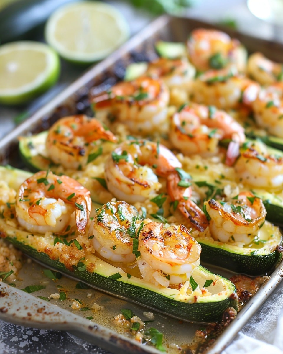 For a creamy twist, I sometimes stir a small amount of cream cheese or ricotta into the shrimp mixture before filling the zucchini boats.