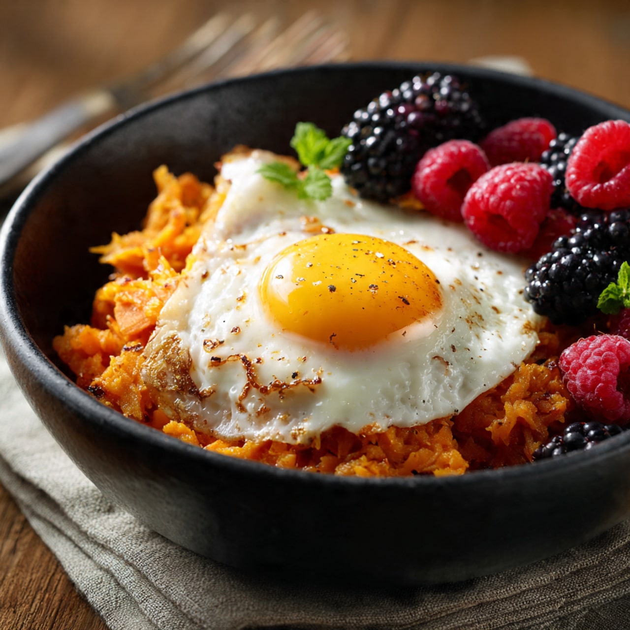 I appreciate how customizable this breakfast bowl is. I can keep it simple or load it up with extra toppings depending on my mood. The sweet potatoes add fiber and natural sweetness, while the protein keeps me full for hours.