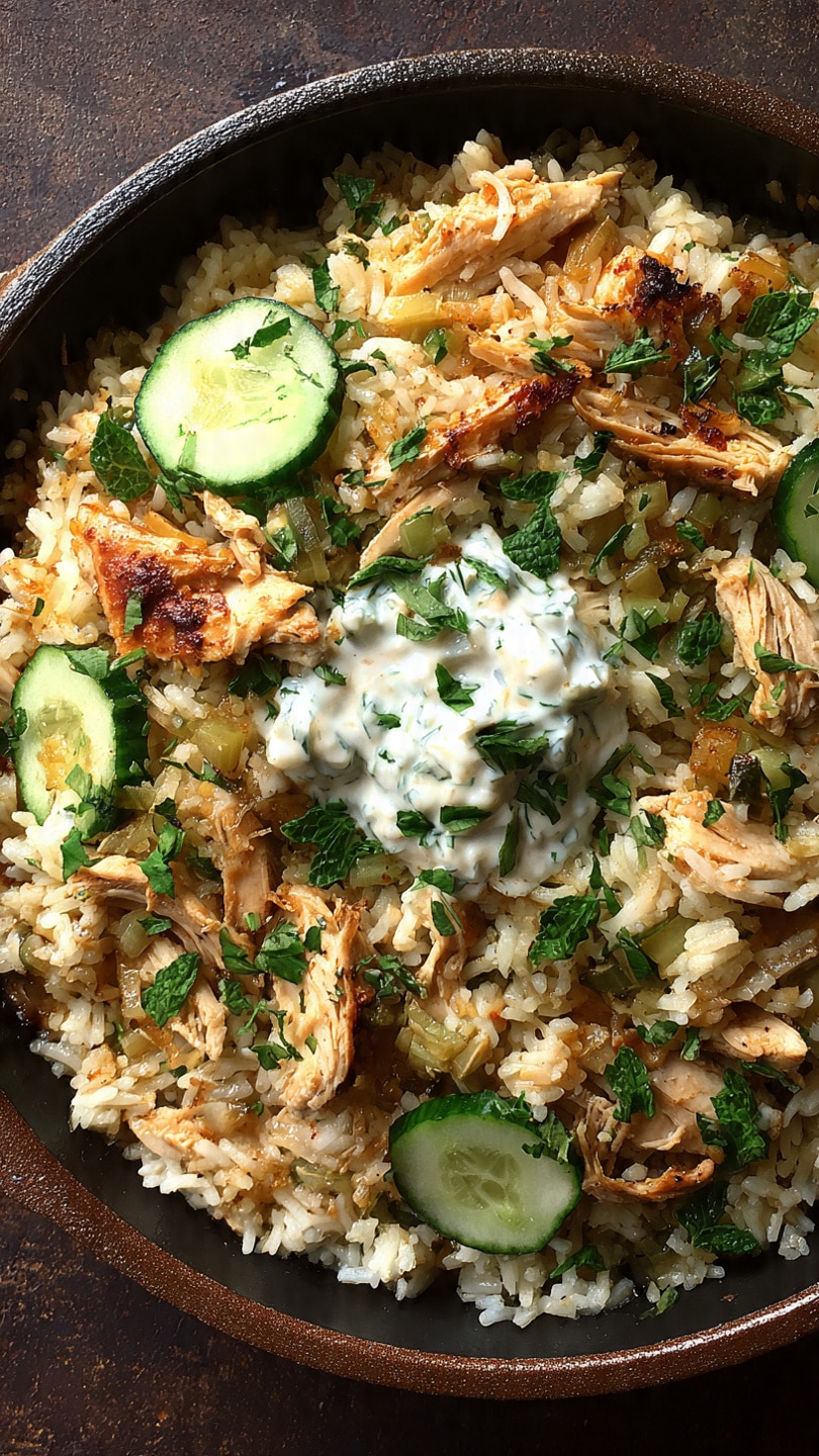 Dump-and-Bake Chicken Tzatziki Rice is a one-pan Mediterranean-inspired meal that combines juicy chicken, fluffy rice, creamy tzatziki, and warm spices—all baked together for a comforting, flavor-packed dish with minimal effort.