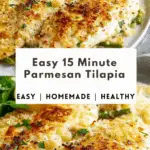 This easy 15-minute Parmesan tilapia recipe features tender, flaky fish topped with a creamy, golden Parmesan crust. Quick to prepare and broiled to perfection, it’s an effortless weeknight dinner that delivers gourmet flavor without the fuss.