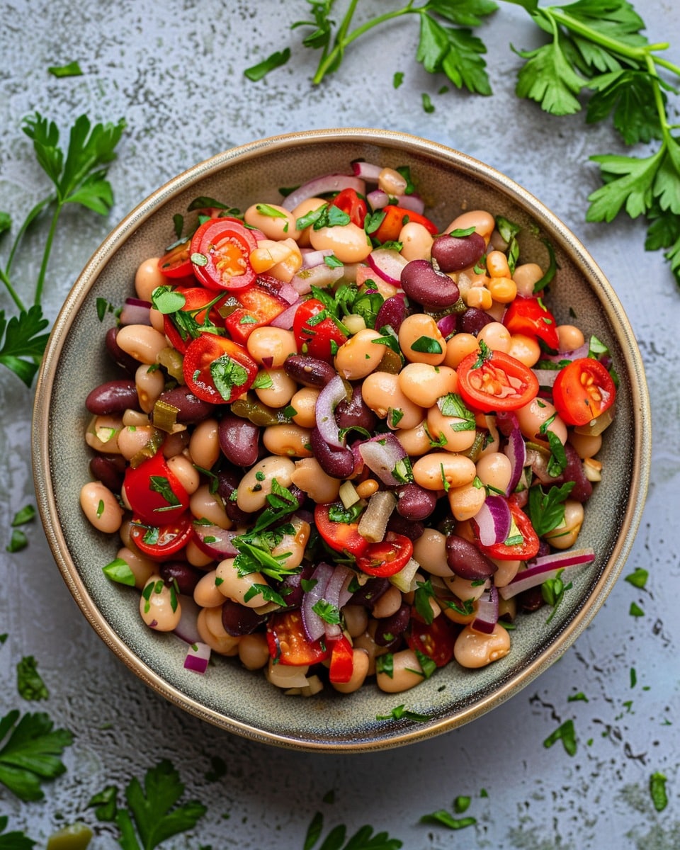 Easy Bean Salad is a colorful, protein-rich salad made with canned beans, crisp veggies, and a tangy vinaigrette. It’s quick to prepare, full of flavor, and perfect for meal prep, potlucks, or as a refreshing side dish.