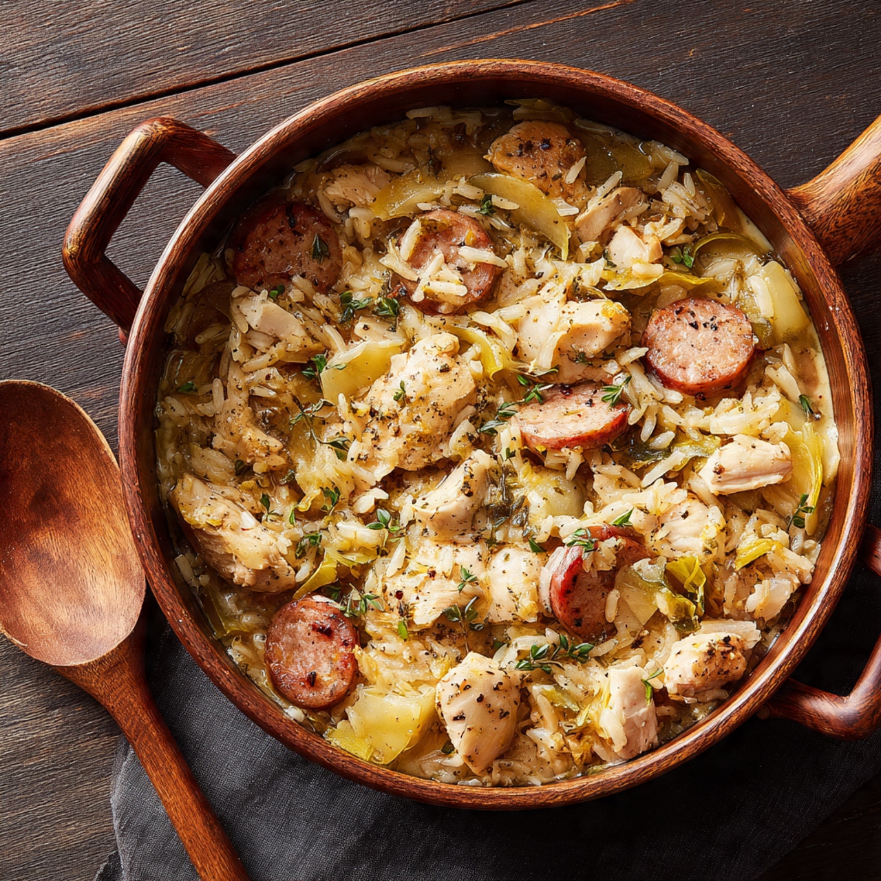 I love this recipe because it uses simple ingredients and very little effort while still delivering a lot of flavor. I only need one pot, which means fewer dishes and easier cleanup. The rice absorbs the chicken broth and sausage flavors, making every bite warm and savory. I also like that this dish is very filling and perfect for feeding a family or making leftovers for the next day.