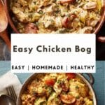 This Easy Chicken Bog recipe is a comforting Southern one-pot meal made with tender shredded chicken, smoky sausage, and perfectly seasoned rice simmered in rich chicken broth. It’s a hearty, family-friendly dish made with simple ingredients and minimal cleanup, perfect for busy weeknights or cozy homemade dinners.