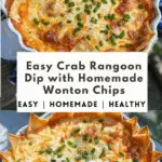 This Easy Crab Rangoon Dip with Homemade Wonton Chips is a creamy, cheesy appetizer that captures the flavors of the classic takeout favorite. It’s loaded with crab, cream cheese, and garlic, baked until bubbly, and served with crispy wonton chips.