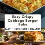 A hearty and comforting cabbage burger bake made with seasoned ground beef, tender cabbage, and melted cheddar cheese, baked until golden and slightly crispy on top.