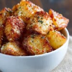 Easy crispy Parmesan roasted red potatoes are golden and crunchy on the outside, tender on the inside, and coated with a savory cheesy crust. Perfect as a side dish or snack.