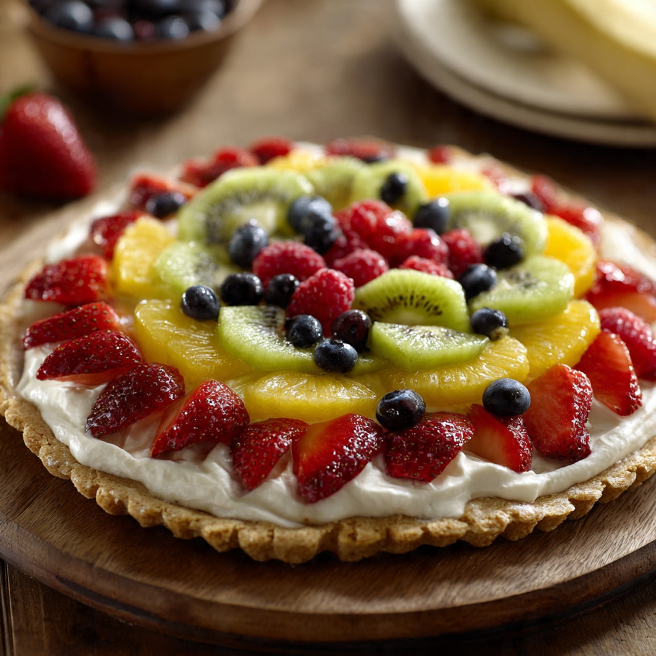 I love how simple and versatile this fruit pizza is. I can use my favorite seasonal fruits and arrange them however I like, which makes it perfect for holidays, birthdays, or casual gatherings. The combination of a sweet cookie base, smooth cream topping, and juicy fruit creates a dessert that feels light yet satisfying. I also appreciate that I can prepare parts of it ahead of time to make entertaining easier.
