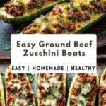 Easy Ground Beef Zucchini Boats are a light yet hearty low-carb meal made with tender zucchini halves stuffed with seasoned ground beef, marinara sauce, and melted mozzarella cheese.