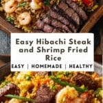 An easy hibachi-style steak and shrimp fried rice made with tender diced steak, juicy shrimp, savory soy-seasoned rice, and vegetables. This quick one-pan meal delivers restaurant-style flavor at home and is perfect for busy weeknight dinners.
