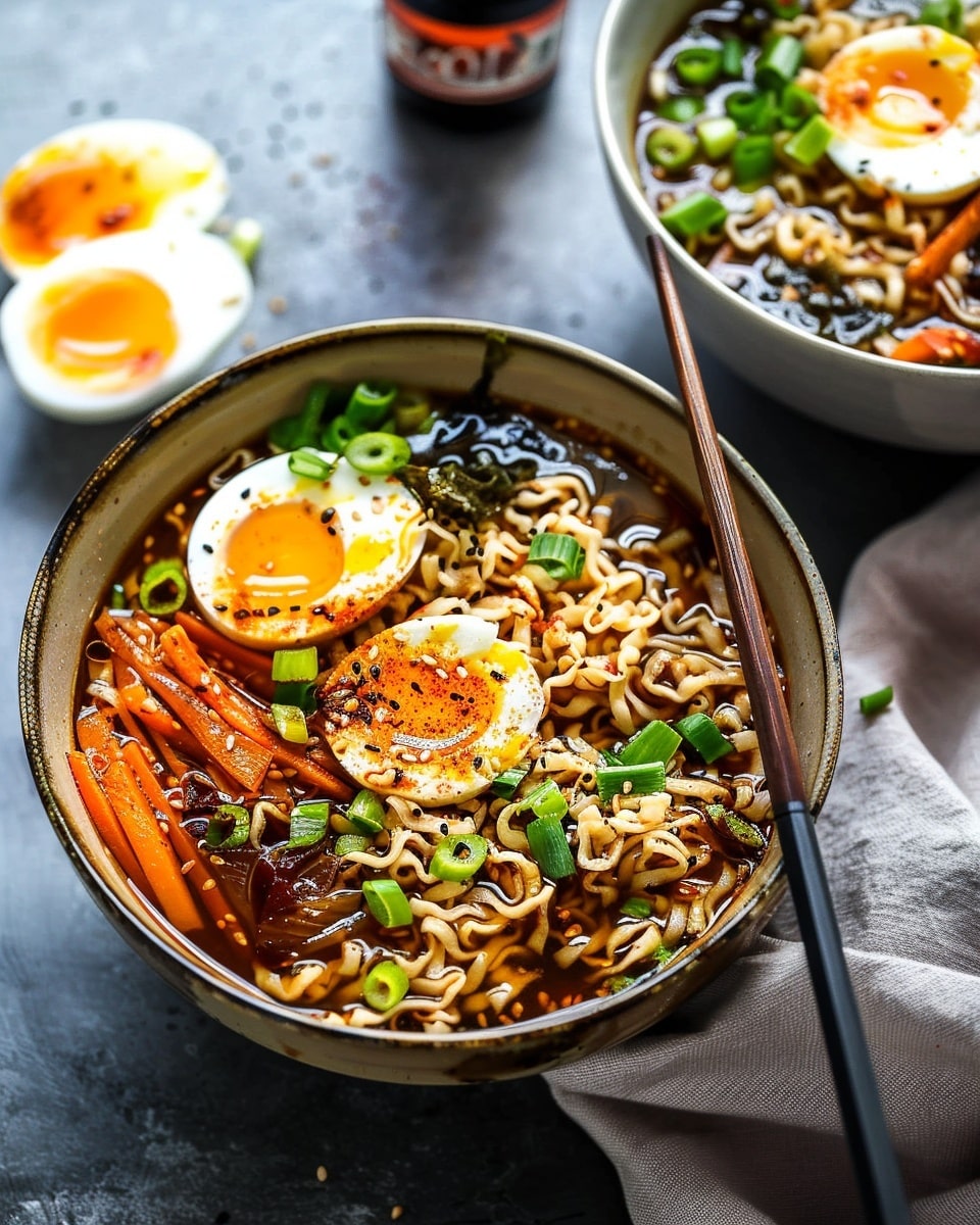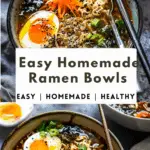 Easy Homemade Ramen Bowls are a quick and cozy meal featuring a savory broth, chewy noodles, and customizable toppings like soft-boiled eggs, vegetables, and proteins. Perfect for weeknights, these bowls bring comfort and big flavor without takeout.