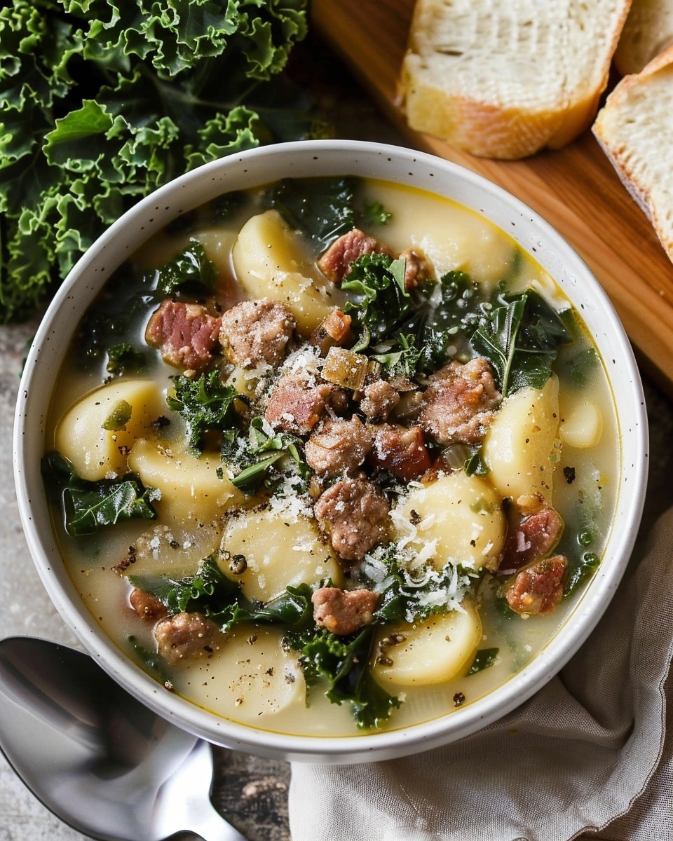 This Easy Homemade Zuppa Toscana Recipe is a creamy, hearty soup inspired by the Olive Garden classic. Made with Italian sausage, tender potatoes, fresh kale, and a rich broth, this one-pot meal is perfect for cozy nights and family dinners. Comforting, customizable, and easy to make — it’s better than the restaurant version!