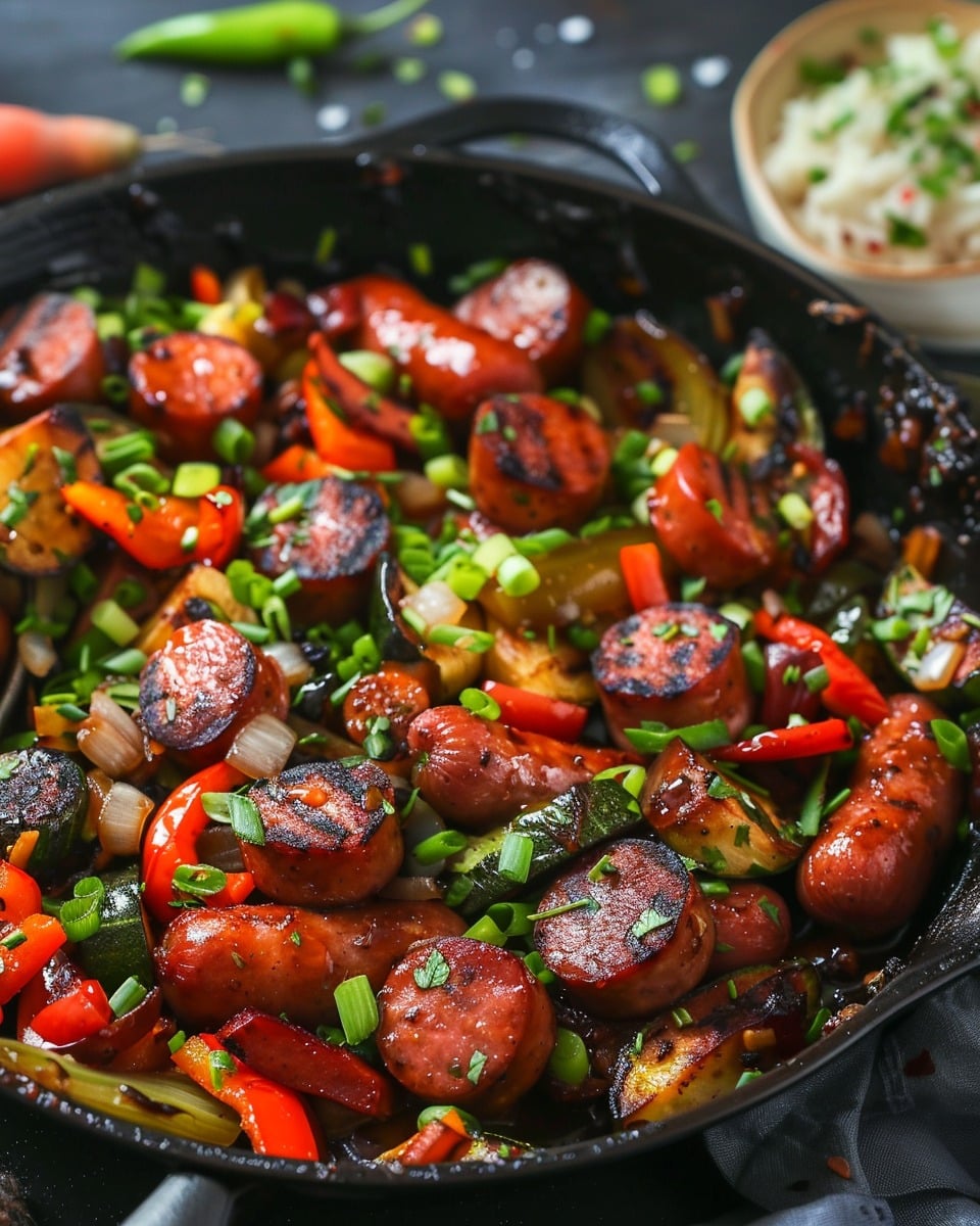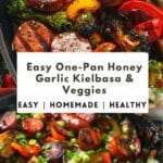 A quick and flavorful one-pan meal featuring sweet and savory honey garlic kielbasa with tender, roasted vegetables, perfect for easy weeknight dinners.