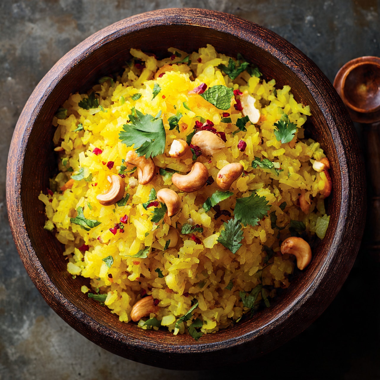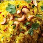 I sometimes add green peas for extra color and sweetness. Another variation I enjoy is topping the poha with sev for a crunchy texture. Occasionally I include grated coconut or roasted cashews for added richness. When I want a slightly tangy twist, I add a little extra lemon juice or a pinch of chaat masala.