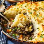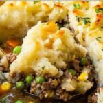 A cozy and hearty shepherd’s pie casserole made with a savory ground beef filling, mixed vegetables, and creamy mashed potatoes, all baked together for an easy family-friendly comfort meal.