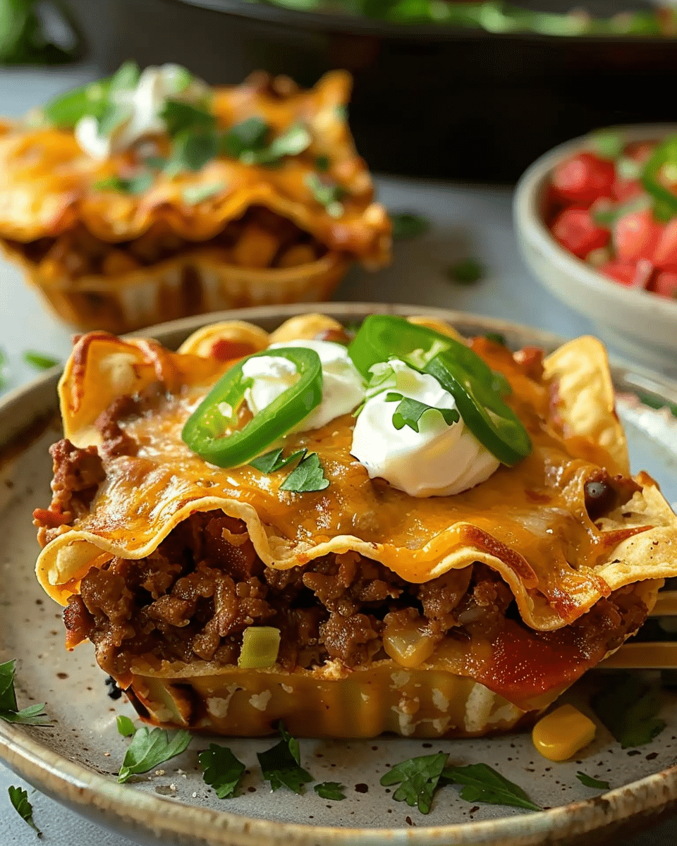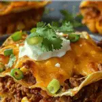 I love this recipe because it’s simple, quick, and packed with flavor. The crispy tortilla base holds all the classic taco goodness — and they’re customizable with any toppings I have on hand. They’re perfect for parties, game nights, or even as a fun twist on Taco Tuesday. Plus, they’re easy to prep ahead and reheat without losing their crunch.