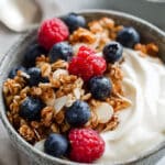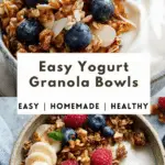 These easy yogurt granola bowls are the perfect healthy breakfast or snack made in just 5 minutes! Layer creamy yogurt, crunchy granola, and fresh fruit for a customizable, high-protein meal that’s simple, satisfying, and full of flavor.
