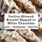 Festive almond biscotti dipped in white chocolate are the perfect holiday cookie—crunchy, nutty, and dressed up for the season. I love how they combine classic Italian tradition with a fun, modern finish. Whether I’m baking them to enjoy with a warm drink or wrapping them up as gifts, they’re a joyful addition to any winter celebration.