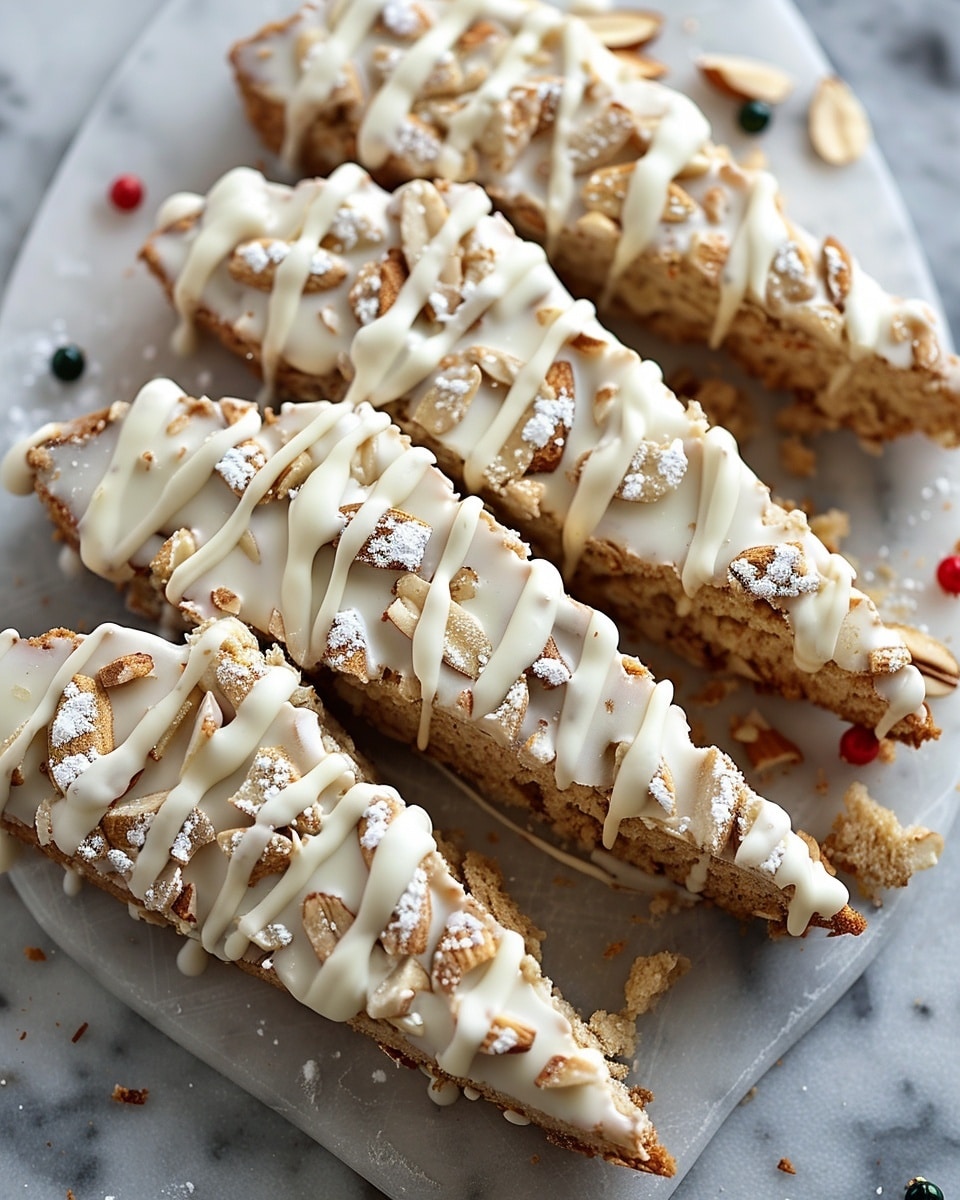 I love this recipe because it’s simple yet feels sophisticated. The biscotti have a perfect crunch, the almonds add richness, and the white chocolate dip makes them feel extra festive. Whether I’m dipping them in coffee, packaging them as homemade gifts, or setting them out for guests, they never fail to impress. Plus, they’re easy to customize with different toppings and flavors.