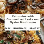 I love how this recipe highlights just a few ingredients but brings out the best in all of them. The caramelized leeks melt into a buttery, slightly sweet base, while the oyster mushrooms add savory depth and a meaty bite. Paired with fettuccine, it feels luxurious without being heavy. I also like that it doesn’t rely on cream or cheese to feel rich — it’s all about the slow cooking and good olive oil.
