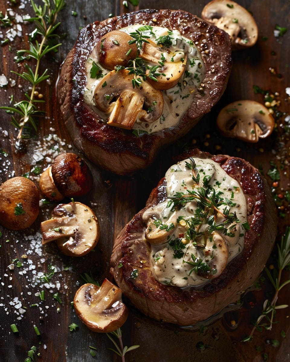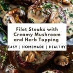 Tender filet steaks seared to perfection and topped with a rich, creamy mushroom and herb sauce for an elegant, restaurant-style meal at home.