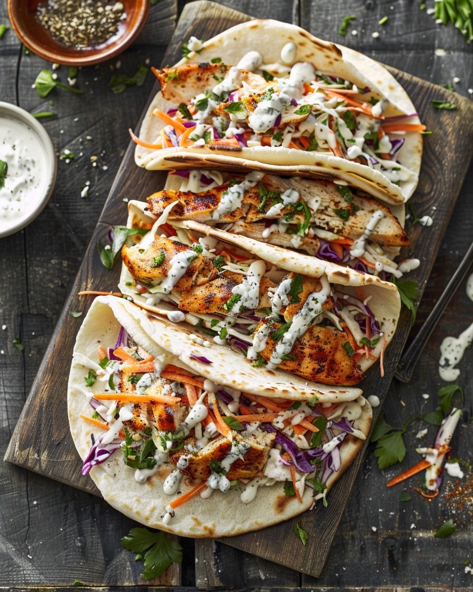 I love how this recipe comes together quickly without sacrificing flavor. The juicy chicken is seasoned to perfection and pairs beautifully with the tangy, creamy slaw. The fresh herbs in the ranch slaw give it an irresistible brightness, and wrapping everything in a soft pita makes it handheld and mess-free. It’s also super customizable and can be made ahead of time, which makes it ideal for busy days.