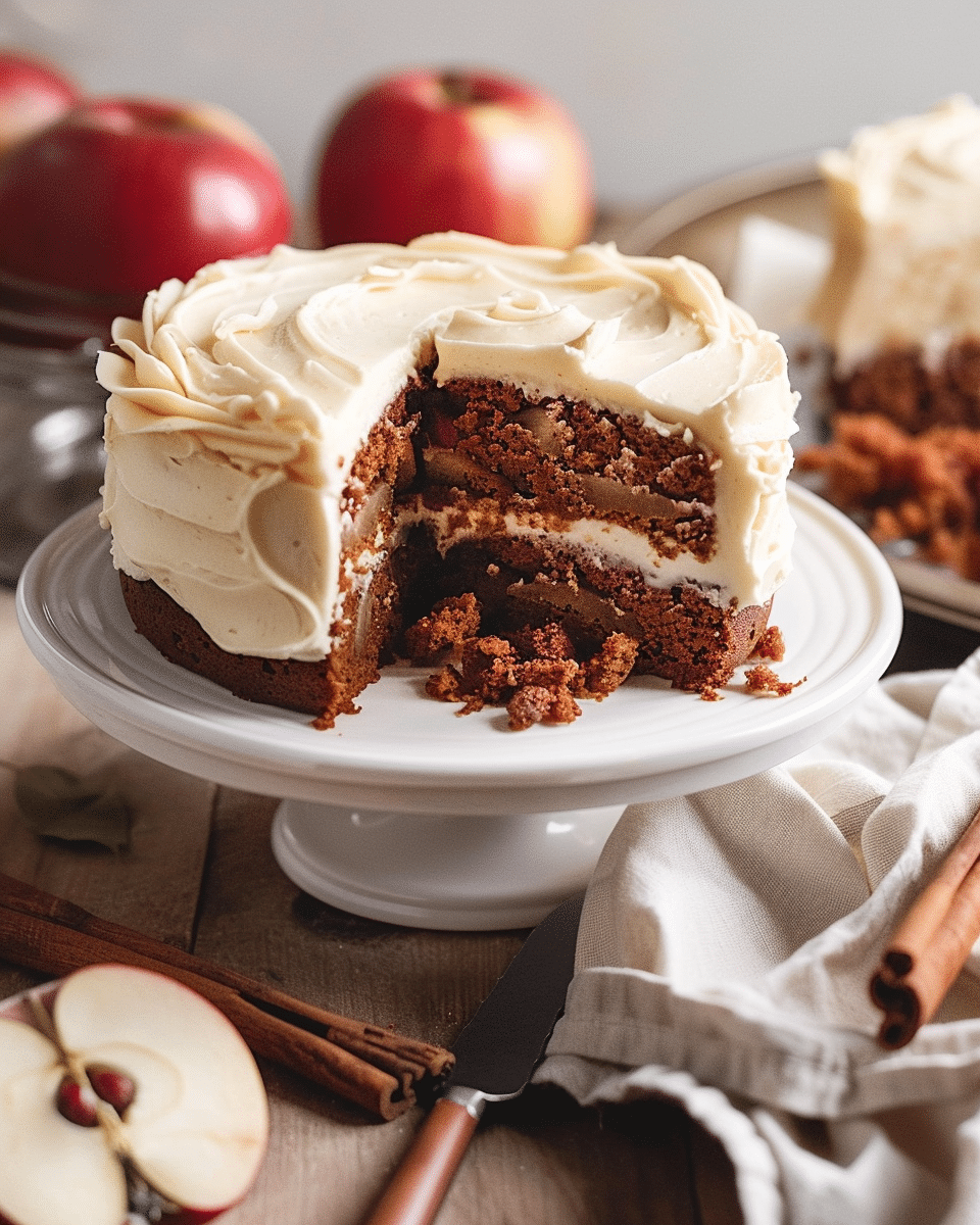 I love this cake because it’s simple, homemade, and completely satisfying. The fresh apples give the cake so much moisture and natural sweetness, while the cinnamon and nutmeg bring a nostalgic fall flavor I can never resist. And that frosting? It’s smooth, rich, and the perfect contrast to the spiced cake. Whether I’m baking for a family gathering or just because, this cake is always a winner.