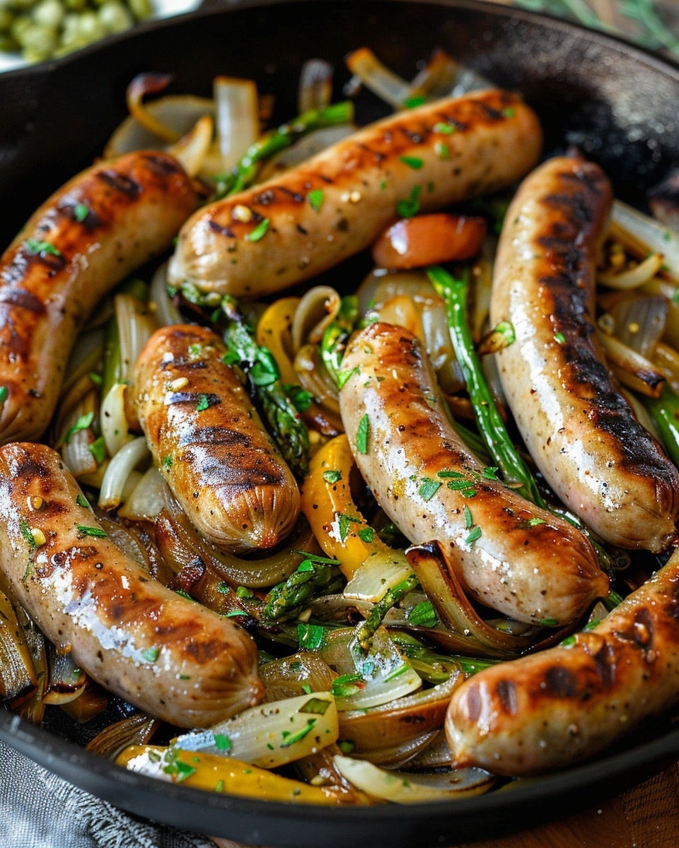 PrintGarlic Butter Bratwurst Skillet Recipe