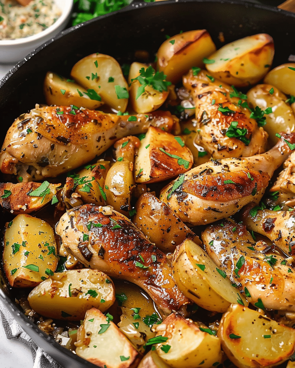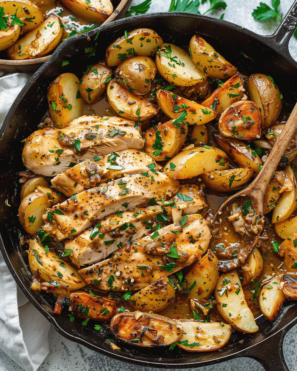 Garlic Butter Chicken and Potato is a comforting one-pan meal featuring juicy chicken, crispy golden potatoes, and a rich garlic butter sauce. It’s easy to make, full of flavor, and perfect for a satisfying weeknight dinner.