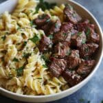 I love how this recipe brings together bold, comforting flavors with minimal effort. It’s perfect for weeknights when I want something hearty but don’t want to spend hours in the kitchen. The garlic butter infuses the steak bites with incredible richness, and the creamy Parmesan pasta is the perfect complement. Plus, it’s versatile—I can switch up the pasta, use a different cut of beef, or even toss in some veggies.
