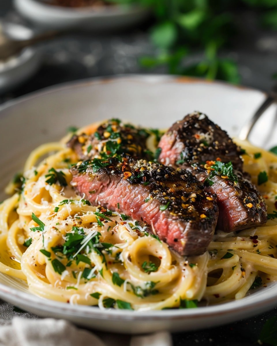 Sometimes I like to switch things up depending on what I have in the fridge. I might use shrimp instead of steak, or swap the heavy cream for half-and-half to lighten it up. I’ve even tried adding sautéed mushrooms or spinach to the pasta for extra depth and greens. For a smoky kick, I’ll stir a touch of smoked paprika into the garlic butter.