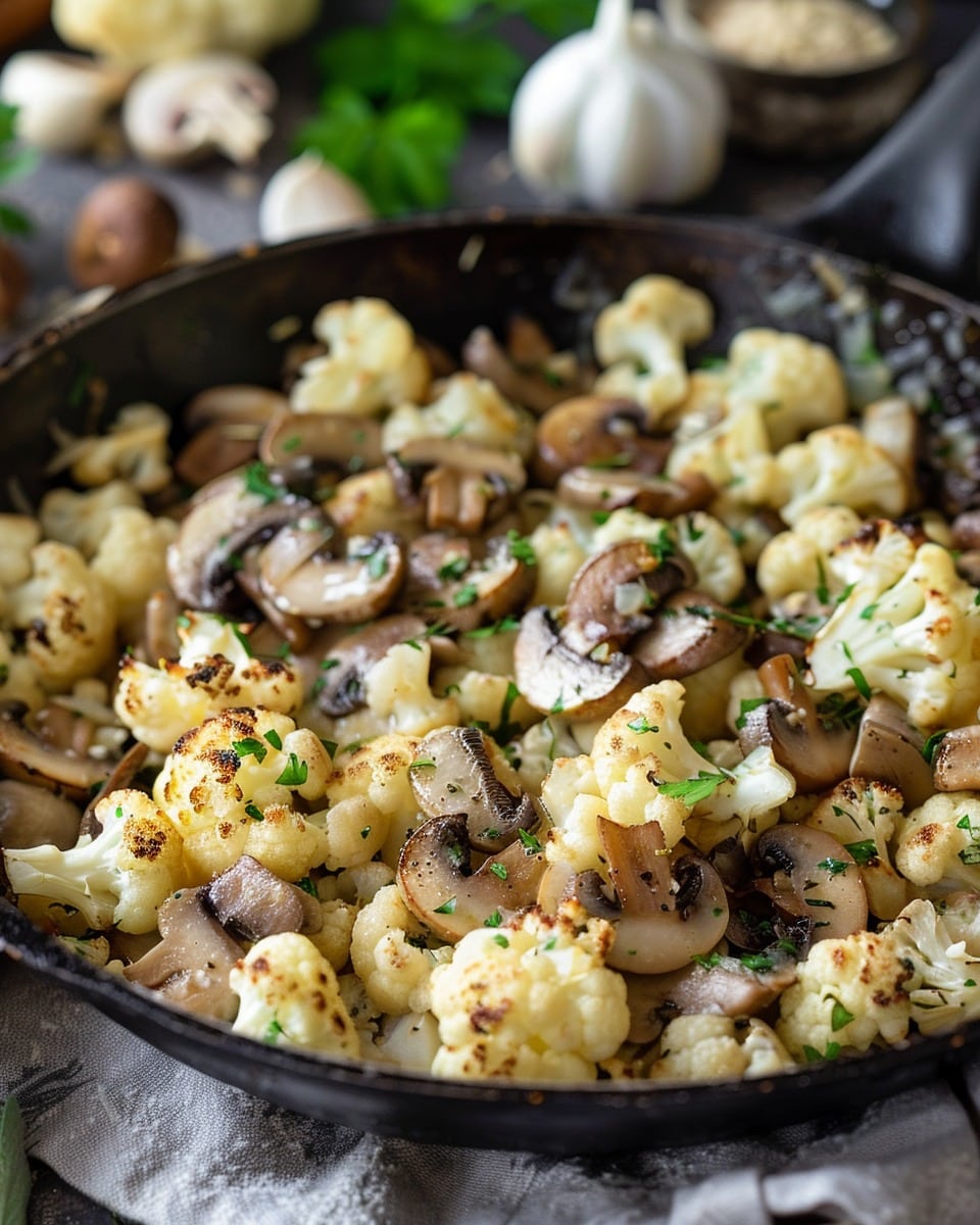 I love how this recipe transforms simple ingredients into something truly satisfying. The cauliflower becomes golden and slightly crispy at the edges, while the mushrooms soak up all the garlicky goodness. It’s all cooked in one pan, which means less cleanup and more flavor. I also enjoy how versatile it is—I can serve it over rice, toss it with pasta, or enjoy it on its own for a low-carb meal. It’s healthy, filling, and comes together in a flash.