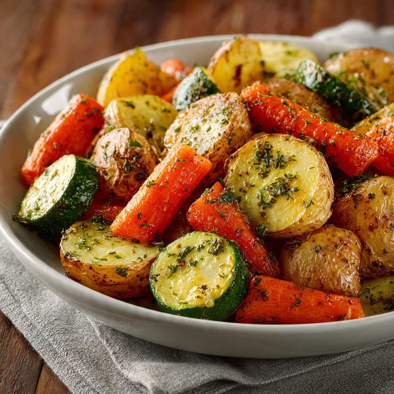 PrintGarlic Herb Roasted Potatoes Recipe with Carrots and Zucchini