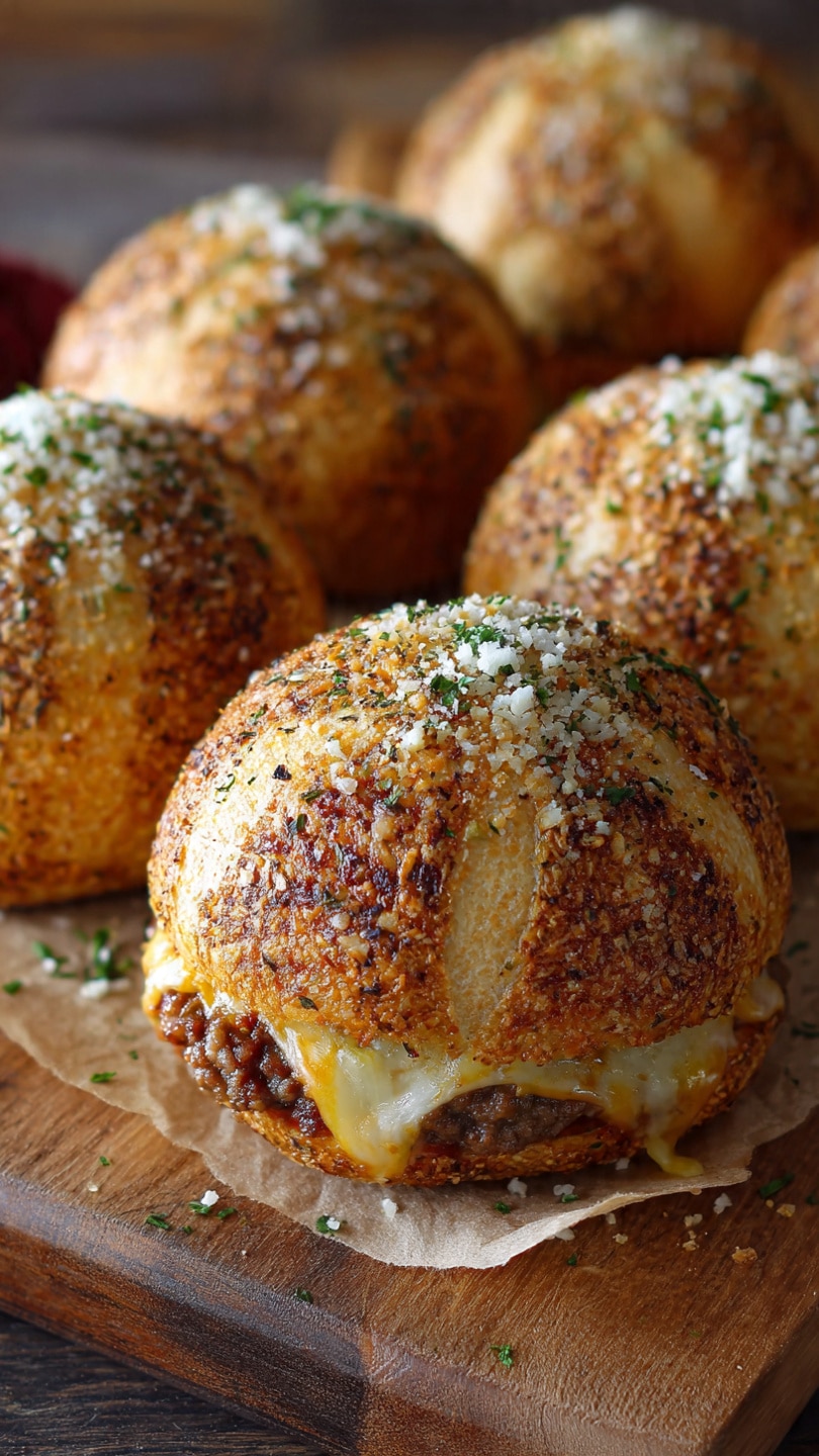 Garlic Parmesan Cheeseburger Bombs are savory, bite-sized snacks packed with juicy beef, melted cheese, and wrapped in soft dough, all topped with a buttery garlic parmesan glaze. Perfect for parties, game day, or a fun dinner.