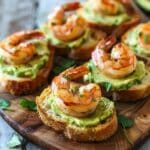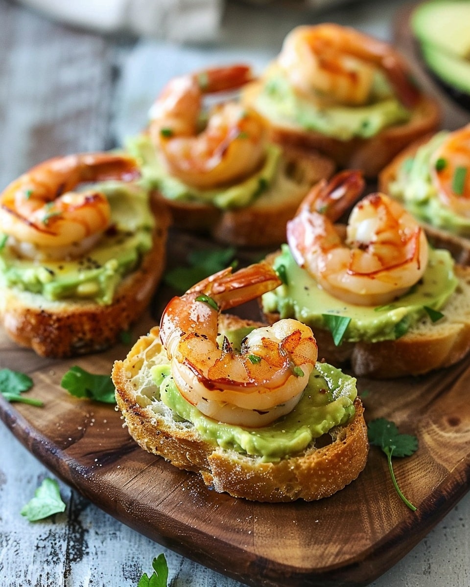 - Serve immediately so crostini stay crisp and shrimp and avocado remain fresh. If assembling ahead, prep components separately and assemble just before serving.