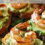 Garlic Shrimp Crostini with Avocado is a quick and elegant appetizer featuring garlicky sautéed shrimp and creamy avocado spread on crisp toasted baguette slices. It combines crunchy, creamy, and savory flavors for a delightful starter or party bite.