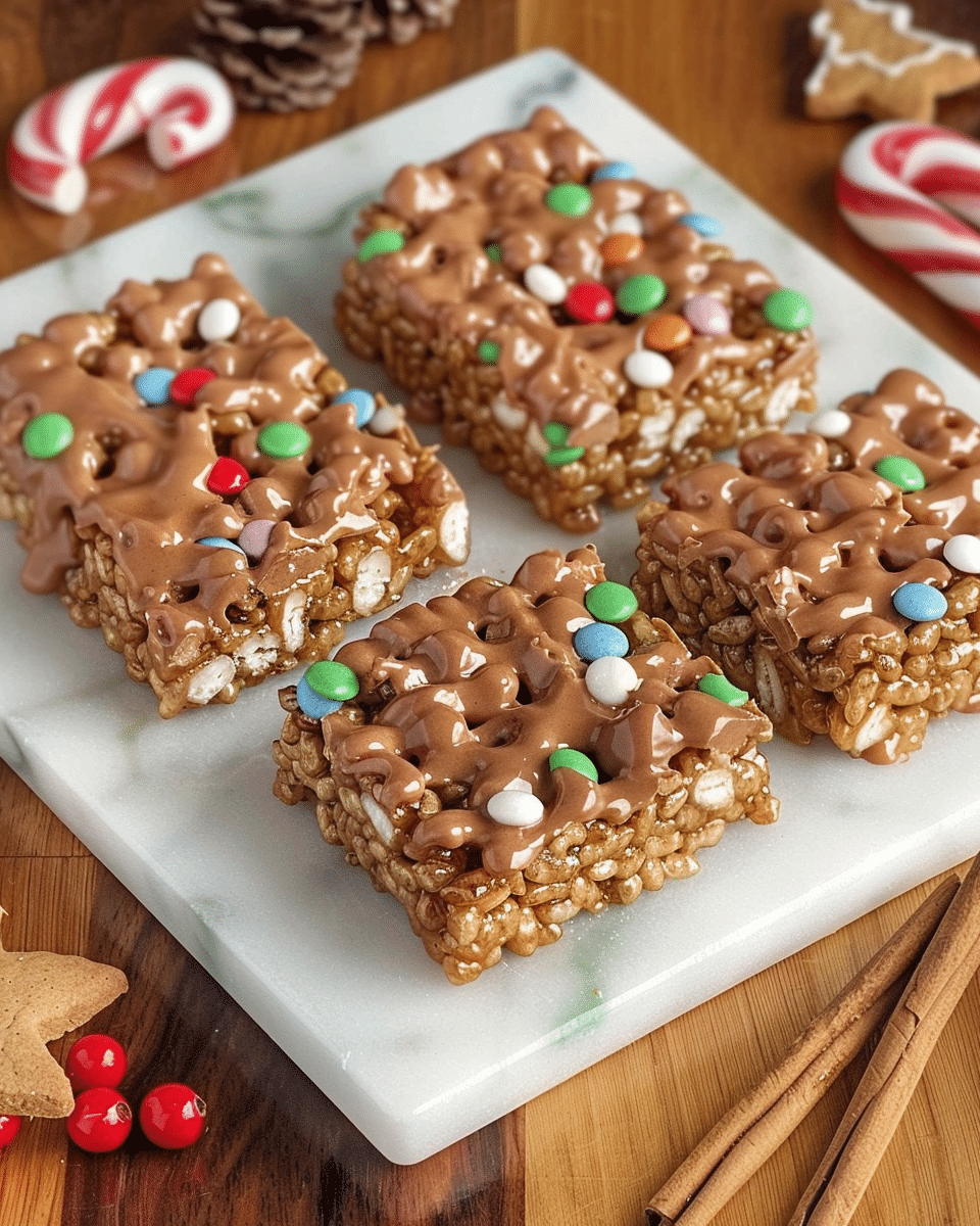 These Gingerbread Rice Krispie Treats are a quick, no-bake holiday dessert bursting with warm spices, molasses, and gooey marshmallows. Chewy, crispy, and topped with white chocolate or festive sprinkles, they’re a nostalgic twist on a classic treat with cozy gingerbread flavor in every bite.