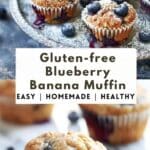 Soft and moist gluten-free blueberry banana muffins made with naturally sweet ripe bananas and juicy blueberries for a wholesome and satisfying treat.