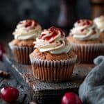 Gothic Cherry Cupcakes are decadent chocolate cupcakes filled with cherry preserves and topped with dramatic black frosting—perfect for Halloween, gothic parties, or moody dessert lovers.