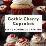 Gothic Cherry Cupcakes are a dark, decadent dessert with a mysterious twist. With deep chocolate flavor, a cherry-filled center, and black-tinted frosting, they’re the perfect treat for moody dessert lovers or gothic-themed gatherings. Whether for Halloween, a gothic tea party, or just a dramatic dessert night, these cupcakes are sure to enchant.