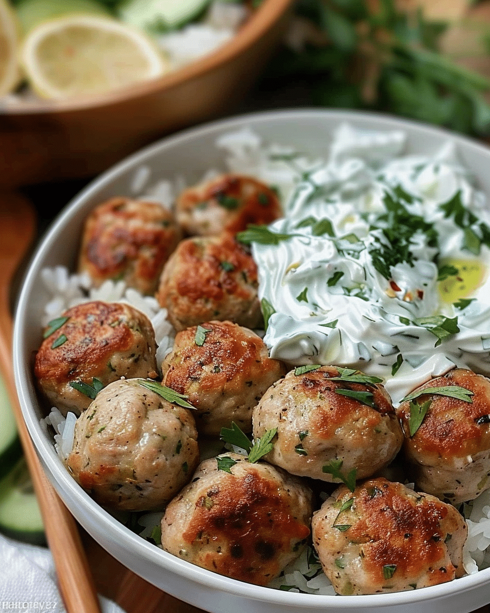 PrintGreek Chicken Meatballs with Homemade Tzatziki Sauce