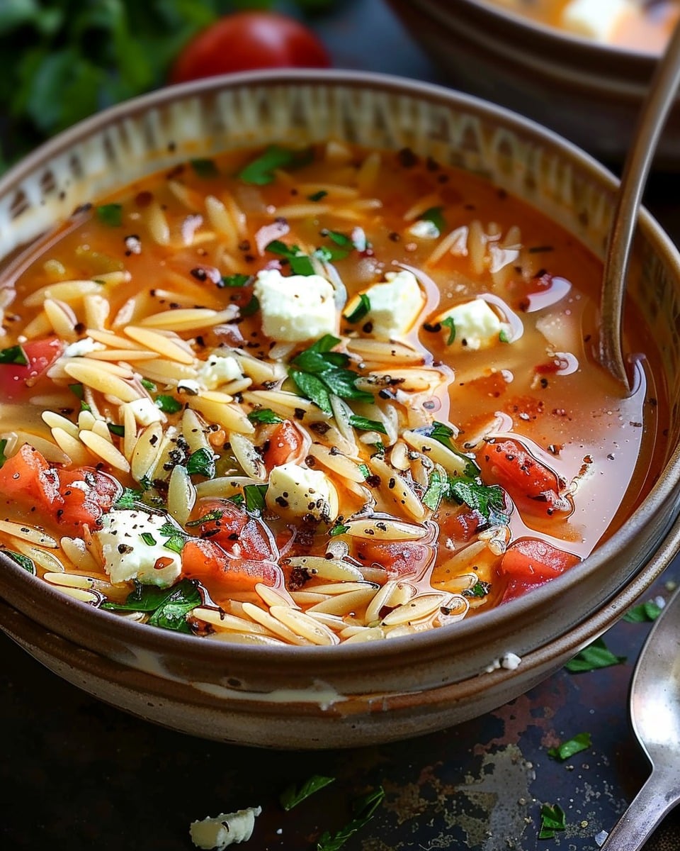 A light yet cozy Mediterranean-inspired soup with tender chicken, delicate orzo, bright tomatoes, fresh herbs, and tangy feta in a clean, flavorful broth.