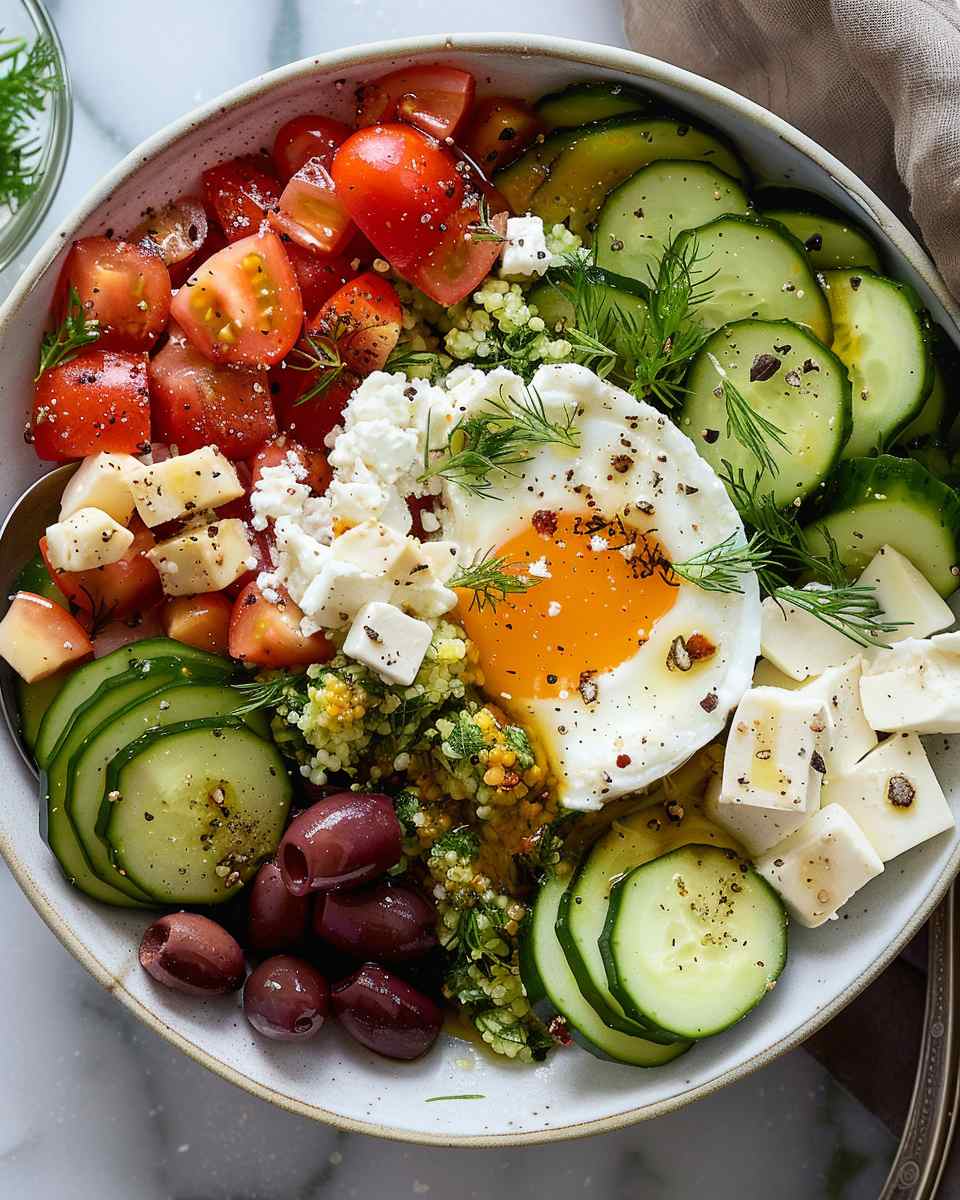 I enjoy how customizable this recipe is, allowing me to mix and match ingredients based on what I have available. The Mediterranean flavors are bright and refreshing, and everything comes together in one bowl, making it both convenient and delicious. It’s also great for meal prep, which saves me time during busy days.