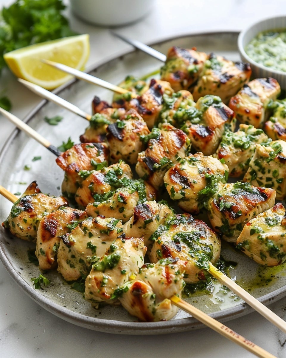 I love this dish because it’s both healthy and indulgent. The marinade is packed with fresh herbs, garlic, and a touch of creaminess that keeps the chicken tender and full of flavor. Grilling gives it a smoky char, while the skewers make it easy to cook and fun to eat. Plus, it pairs wonderfully with salads, rice, or grilled veggies, making it versatile for any occasion.