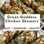 Green Goddess Chicken Skewers are juicy grilled chicken pieces marinated in a fresh, herby Green Goddess dressing. Packed with vibrant flavor from garlic, lemon, and herbs, these skewers are perfect for summer cookouts or easy weeknight meals. Serve with extra sauce for dipping and your favorite sides.