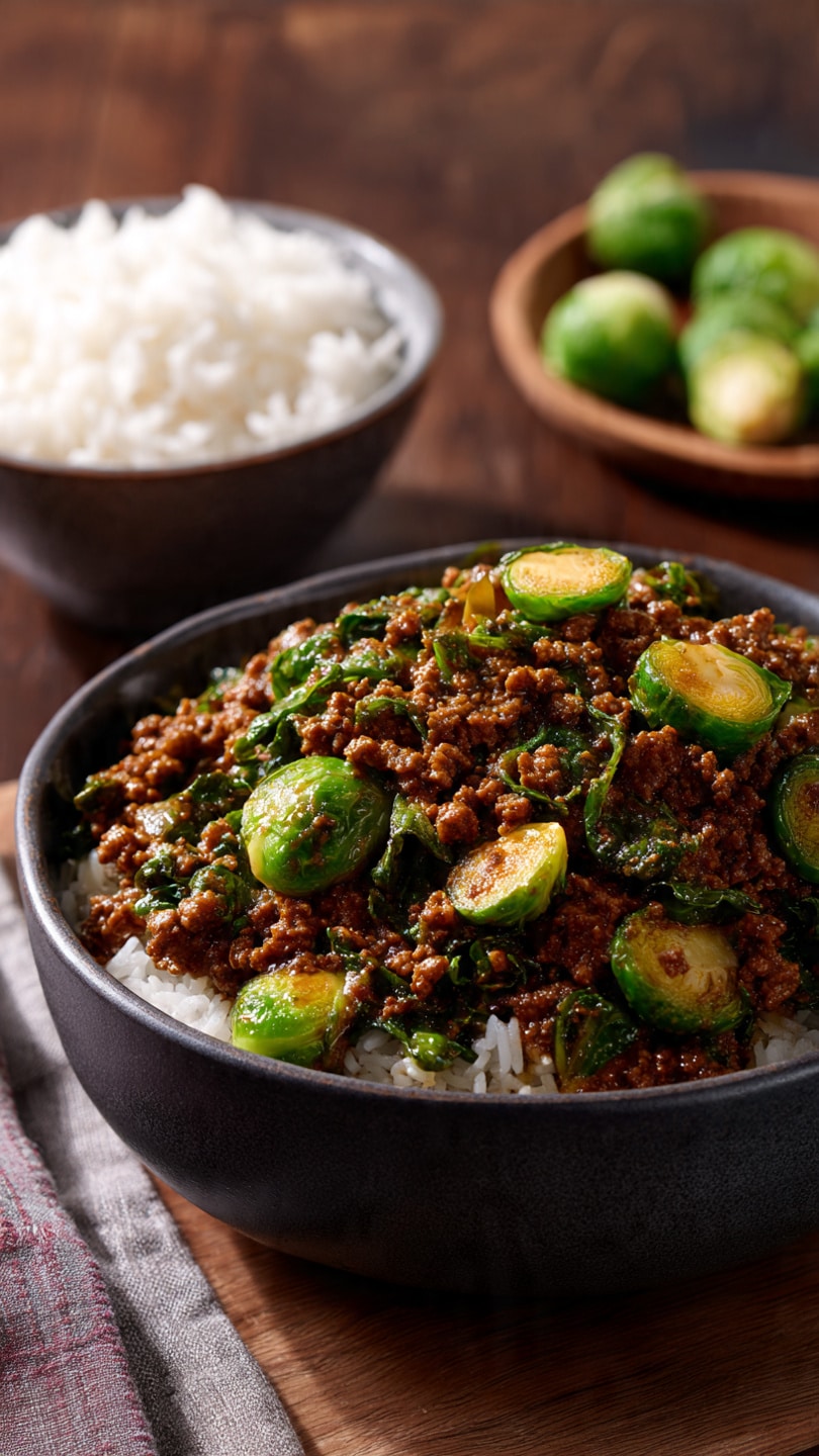 I love how easy this meal is to make with just a few ingredients and minimal cleanup. The ground beef adds hearty flavor and protein, while the Brussels sprouts bring texture and a slightly nutty bite when browned in the skillet. It’s healthy, filling, and totally customizable depending on what I’m craving. Plus, it works great for meal prep and reheats like a dream.