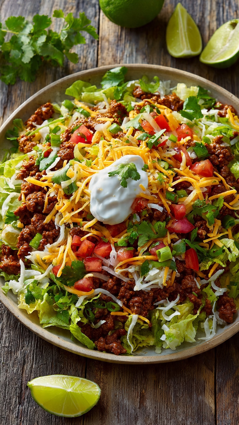 I love this taco bowl because it delivers big flavor with minimal fuss. The beef is juicy and savory, the potatoes are crispy and golden, and the toppings bring freshness and crunch. It’s easy to scale up or down, and I can mix and match toppings to keep things interesting. Plus, it’s naturally gluten-free and keeps me full and happy.