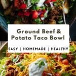 Ground Beef & Potato Taco Bowls are a flavorful and filling twist on taco night, featuring seasoned beef, crispy potatoes, rice, and fresh toppings—all layered in a satisfying, customizable bowl.